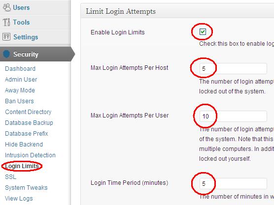 Berikut ini saya contohkan salah satu fungsi plugin Better WP Security, yaitu untuk membatasi jumlah percobaan Login ke situs/blog wordpress kita,